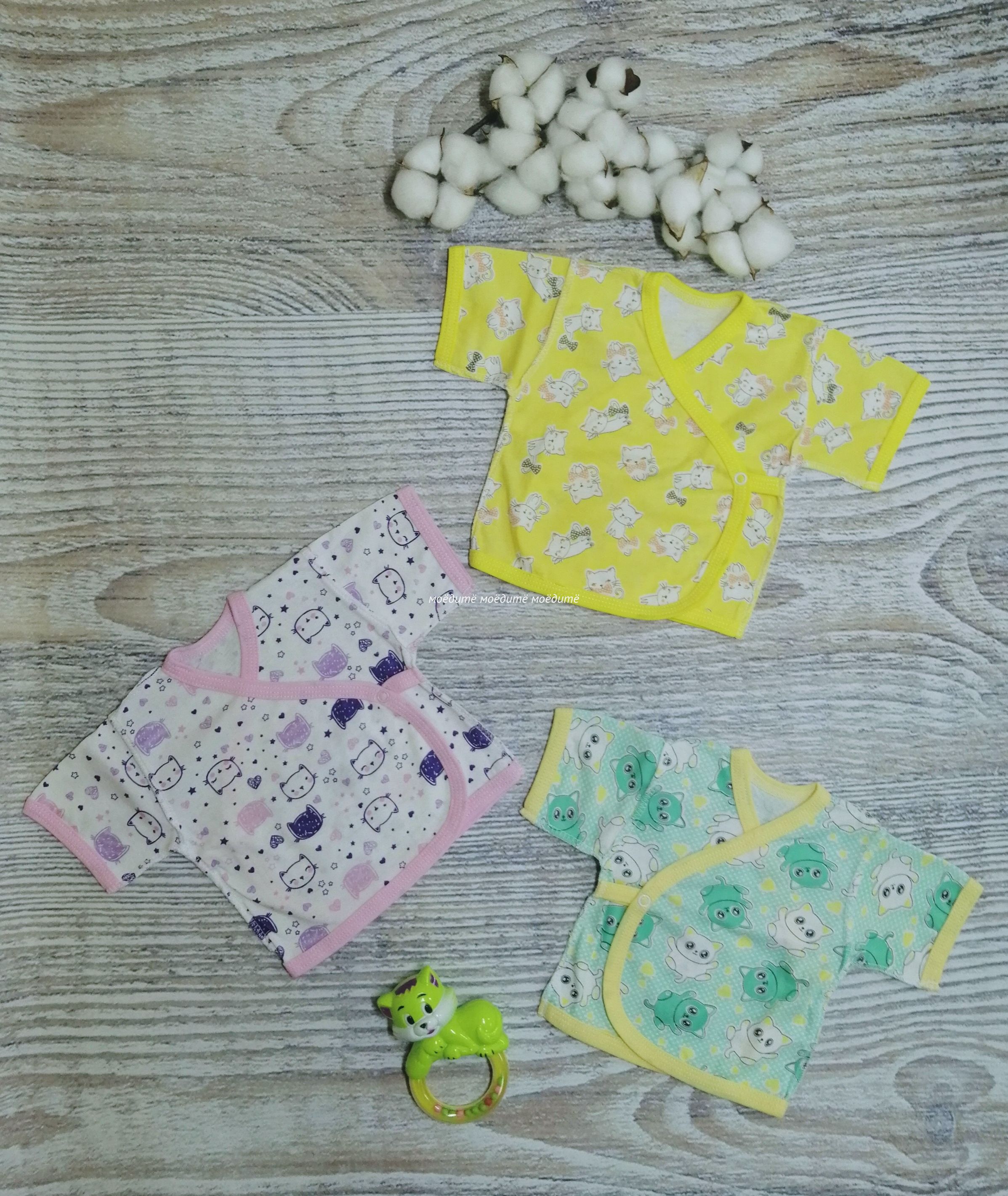 Кофточка с коротким рукавом без манжет, с запАхом. У роста 56 и 62 швы выполнены наружу.
